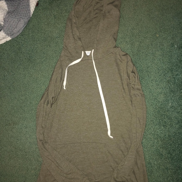 This is a green, thin, and soft pullover great for the fall. It is very comfortable and super soft!