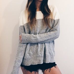 White and gray color block pullover sweater from Old Navy. Crew neck. Well loved item in good condition. It's currently de-pilled but as an FYI it pills easily with wash and wear. Bought this from the men's section in a size XL* for an oversized look. **marked as size small to reflect how it fits on me / my size