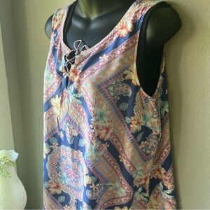 pure Jill Hibiscus Floral SCARF PRINT TANK Lace-Up Neck Lightweight Rayon Top M