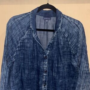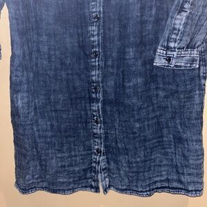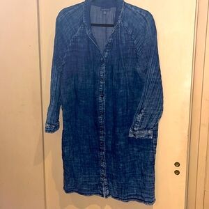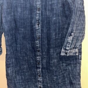 Excellent quality dress light weight almost gauzy denim colored dress. Pit to pit and shoulder to hem 23” inches 37 1/2” inches.