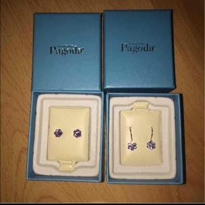 cube shaped purple earrings and purple flower earrings *has never been worn*