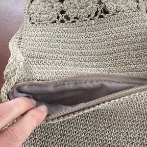 crochet tan purse; excellent condition