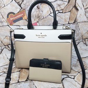(◕‿◕✿) purse staci medium satchel shoulder bag beige leather medium Wallet Kate Spade ▪️ Dust bag not included ▪️ NWT (new with tag) (ꈍᴗꈍ) No trades, No Dust Bag MORE DETAILS: Authentic 8.62"h x 10.87"w x 5"d handle drop: 5.5" strap drop: 22" metal pinmount logo two way spade jacquard lining interior front slip & back zip pockets exterior front & back slip pockets drop in top zip closure (wallet - Height: 3 3/4'' Length: 6 3/4'' Depth: 1/2'') · • —– ٠ ✤ ٠ —– • · PLEASE NO LOWBALL OFFERS