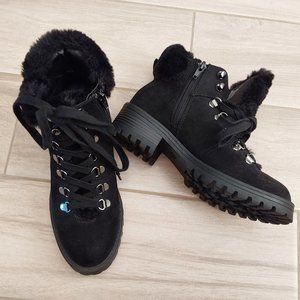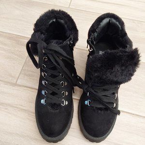 r2 KIERRA Black Faux Suede &Fur NWOB Lace Up Ankle Boots. Size 6 Medium