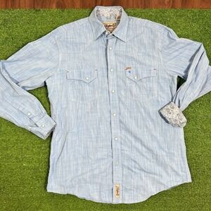 rafter c pearl snap shirt MED. baby Blue Rodeo Western Button Up EUC