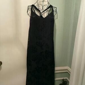 NWT Rag & Bone Colette Black A-line Slip Midi Velvet Embroidered Black Floral V-Neck Dress Size Small. Semi Sheer, Lined, Sleeveless, Slit on both sides, Back tie with buttons. Perfect for any special event