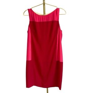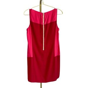 Gorgeous Rag & Bone Corina shift dress in a bold red and pink color block design. Features a pink panel at the neckline and a flattering, effortless silhouette. Perfect for any occasion!