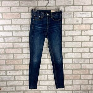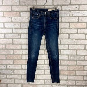 rag & bone 10” High Rise Ankle Skinny Raw Hem Jeans in Mad River Wash Size 24