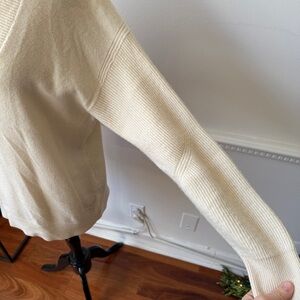 Gorgeous ribbed details on arms, v neck, and bottom trim.