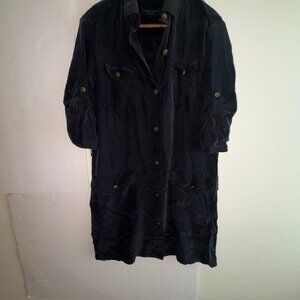 rag & bone 100% Silk Black Shirt Dress Collar Brass Buttons size 6