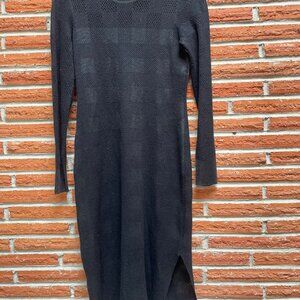 Rag & Bone Black Tonal buffalo check jacquard, knit into a casual long sleeve dress crafted from semi sheer baby alpaca. Semi sheer rib trims on neck, cuffs and hem, with side slit. Gently Loved