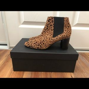 worn once rag & bone Aslen Boot in tan cheetah size 9. Comes with dustbag. Italian flocked kick suede and leather sole. Heel measures 2.75 inches
