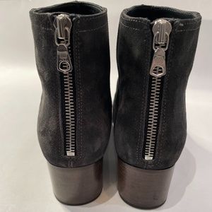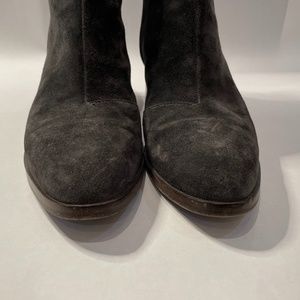 Sleek black suede ankle boots. Classic design with a modern touch. Perfect for any occasion. Size runs small, I wear a 7.5 and this was tight, feels more like a 7 although box shows 7.5