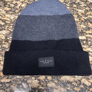 This stylish Addison beanie from rag & bone features a classic knitted design in a sophisticated black and gray color scheme. The ribbed knit material adds texture, while the color-blocking creates a modern aesthetic. Perfect for adding warmth and style to any outfit.