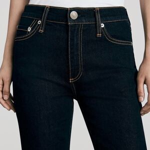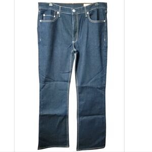 Mid-rise boot cut jean is ultra flattering and ultra easy to wear. Featured here in our dark wash, Rinse.