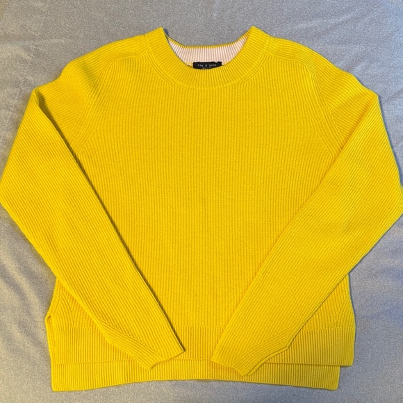 Vibrant yellow ribbed knit sweater by rag & bone. Crew neckline. 100% cashmere. Incredibly soft. Women’s small.