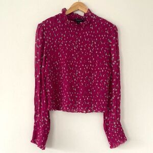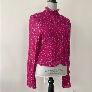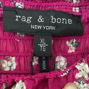 rag & bone Burgundy Fitted Floral Ruffled Blouse Smocking Victoria Boho NWT