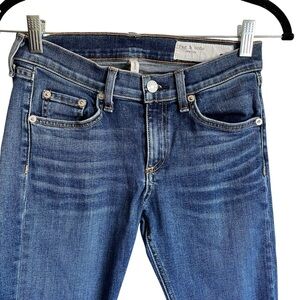 Experience the perfect blend of style and comfort with these rag & bone Blue Ankle Cropped Jeans. Crafted from premium denim, these jeans offer a sleek ankle-length fit that is ideal for casual outings. The classic blue hue and subtle fading effects add a touch of timeless elegance to your everyday wardrobe.