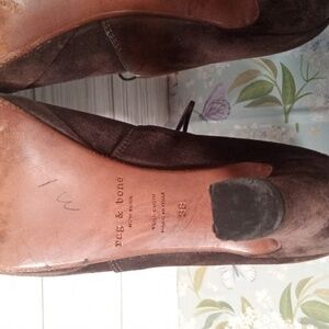 Chic dark brown suede boots with a stylish heel. Perfect for elevating any outfit. they have some wear to the suede plz see all pictures..still in good condition..
