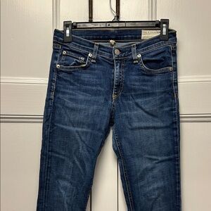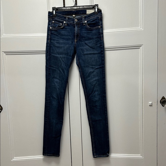 Stylish dark blue skinny jeans. Classic five-pocket design. Perfect for any occasion.