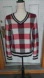 'We love this retro-style v-neck cut from 100% Merino wool in a Buffalo check jacquard with a black and white contrasting trim.'