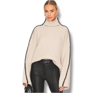 rag & bone Ingrid Ribbed Turtleneck in Ivory Wide Sleeves Women's XS Black Trim