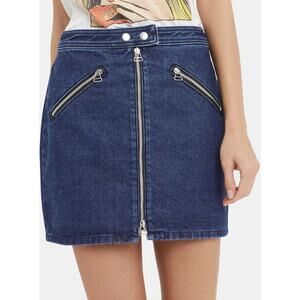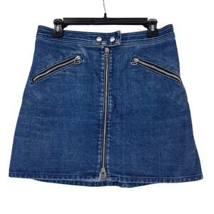 rag & bone JEAN Marcy Denim Mini Skirt Blue Sz 32 Zip Front Pockets Casual Chic