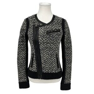 rag & bone Jacket Samantha Knit Tweed Wool Lamb Leather Trim Blazer XS