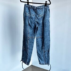 Wide-leg cotton fleece lounge pants. Trompe l'œil denim graphic printed throughout.
