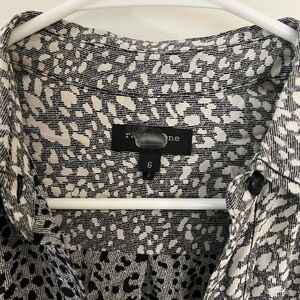 Two-tone styling and a drape-front detail define this modern-cool dress by rag & bone. Grey printed silk (100% Silk). Hourglass. Long sleeves. Button closure. Wrap dress. Shirt collar neckline.