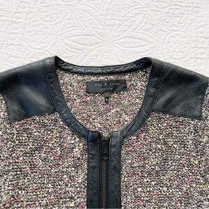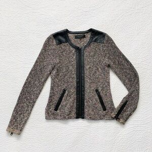 Sleek, trim fit and lambskin leather trim makes this full-zip jacket a sporty take on rustic tweed.