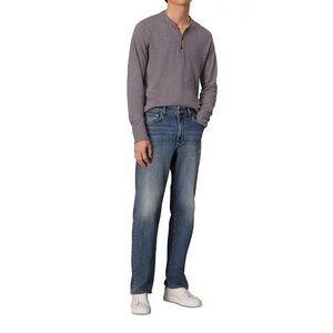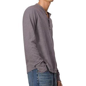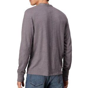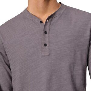 rag & bone Men's Long Sleeve Classic Flame Henley Raw Edge Collar Tee Shirt Grey