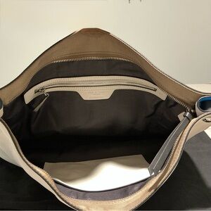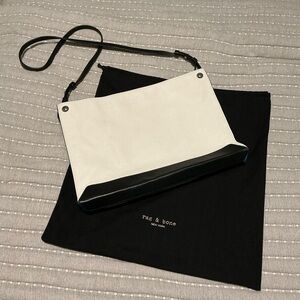 This rag & bone “Compass” large crossbody leather bag is new without tags and has never been carried. White, blue, black and tan with silvertone hardware. I’ve tried my very best to get good photos, but they’re just not as good as this bag looks in person. Photos with white background are stock photos, but my bag appears same. Bag measures approx. 14.5” x 10” x 2” with adjustable shoulder strap. Two interior pockets (one zip, one slot) and zipper closure at top. This fantastic bag can be used as a purse or a great bag to carry your laptop. I’ve priced crazy-low to sell fast! Don’t wait if you really want it. Dust bag included.
