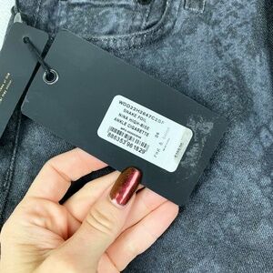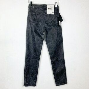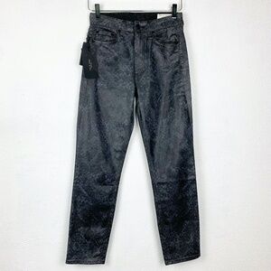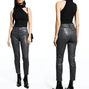 Nina ankle cigarette jean in snake foil by rag & bone. High rise. Straight leg. Wax coated outer fabric. Ankle length. Classic five pocket style.