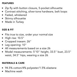 rag & bone Nina High Rise Ankle Skinny Raw Hem Jeans in Jasper Wash Size 27