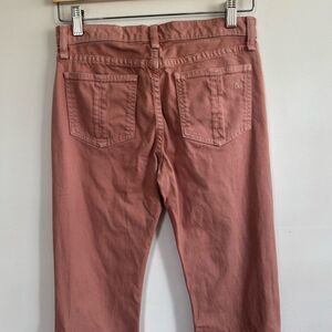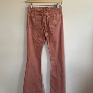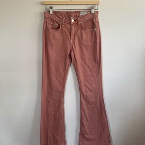 Stylish pink flare jeans. Classic five-pocket design. Perfect for casual wear.