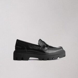 The Quinn. Set atop a platform lug sole, the crinkle patent leather loafers feature all the hallmarks of the classic: penny slots and a slip-on construction. Crafted with dual-density antimicrobial foam insoles: OrthoLite Lazy-Hybrid for custom-fit comfort, and OrthoLite Recycled for stability and support.