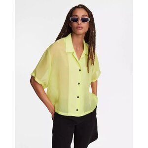 Reminiscent of a classic camp shirt — if your kind of camping is elevated glamping. Made from a soft silk-blend with a lower neckline and metal fisheye buttons.