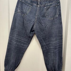 Very gently worn rag & bone Sweatpant Jean Jogger Size XL. These sweatpants are printed with a distressed (whiskered, faded) look. Elastic waist and cuff. SOOOO COMFY! No stains/rips/issues. They have real side pockets, but the "jeans" pocket/zipper are printed/not real.