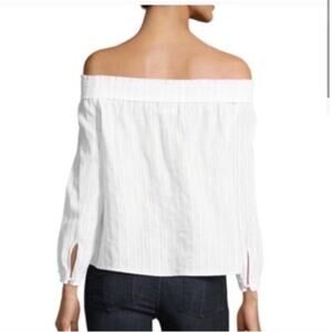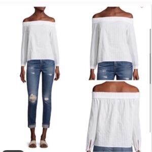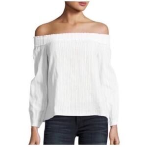 An essential off-the-shoulder top in 100% cotton with a muted dobby stripe