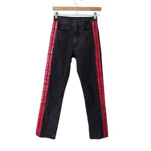 Rag'n'Bone women's jeans size 23 black charcoal with red racer stripe sides made in the USA 100% cotton high waist straight leg