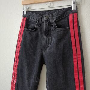 rag & bone Women's Jeans Size 23 Black Red Vinyl Side Striped High Waist Pants