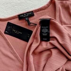 rag & bone Zoe Top Deep Vee Long Sleeve Ribbed Crepe Fitted Mauve L NWT