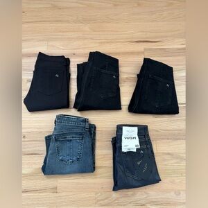 Two pairs are dark charcoal/black denim leggings with elasticated waist size XS, some marks as pictured on one pair