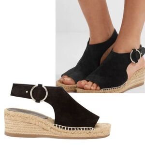 rag & bone Calla Black Suede Wedge Espadrille Black Sandals Size EU 39 US 8
