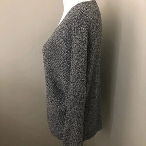 Marled black/white loose fitting sweater.  Has pretty detail in the front that the pictures don’t do justice.  EUC