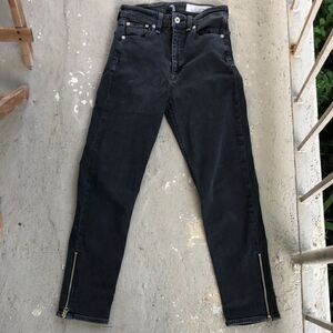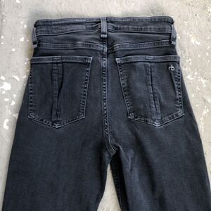 Nice high rise jeans. Rise to the bottom of the belt is 9 inches inseam is 26. Faded black color