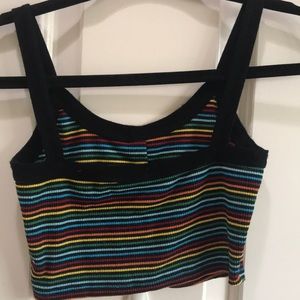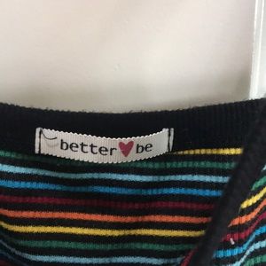 stretched ribbed material, buttons don’t unbutton (just decorative), rainbow stripes