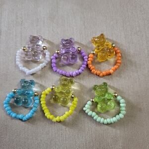 rainbow kandi color gummy bear stretchy beaded ring bundle 90s / y2k style
