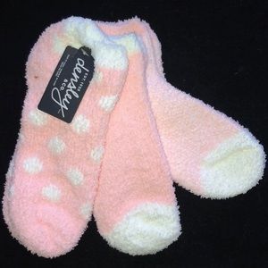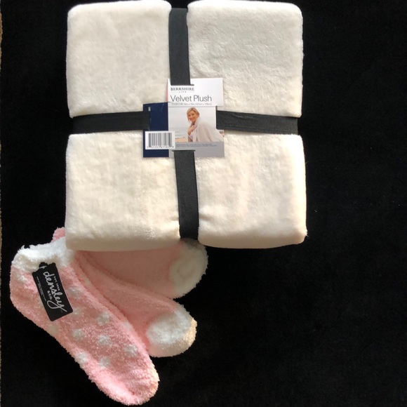 Brand new with tags! Super soft cuddly blanket with 3 cute fuzzy sox. Makes for a great gift. Price is firm. 50”x 70”